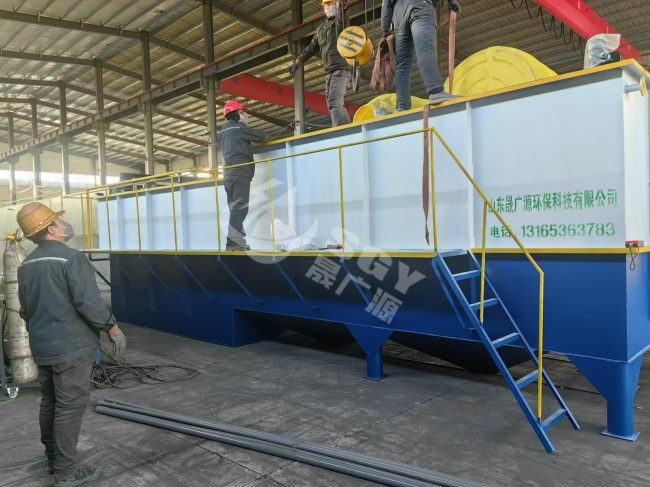 采用新型高效的溶气设备——微气泡发生器,代替传统的引气设备向水中溶气,并在气浮区域内安装若干斜管组,包括箱体、刮渣机、螺旋出料机共同组成一个完整气浮净水装置。